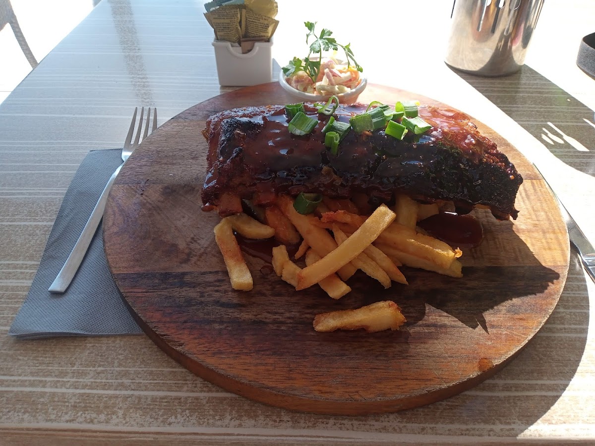 the location is great, it is right on Fenale beach. the food is great, the portions are big. I think it's a good option to share with someone. there is everything. we ate burgers. I couldn't eat mine. they also have quesadillas, nacos. the atmosphere is relaxed as are the staff. great for lunch if you are on the beach. toilet fine. there is a tv. the food is really good. all recommendations