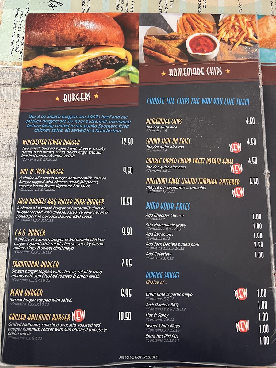 Guests can start their day with classics like the Full English Breakfast the Big One, or enjoy sharing plates such as Giant Panko Mozzarella Sticks and Loaded Nachos. For those craving something more substantial, dishes like Fresh Fish and Homemade Chips, Half Rack of Ribs, and a variety of burgers including the Tower Burger and Winchester Burger bring a familiar, hearty touch that matches the laid-back atmosphere.